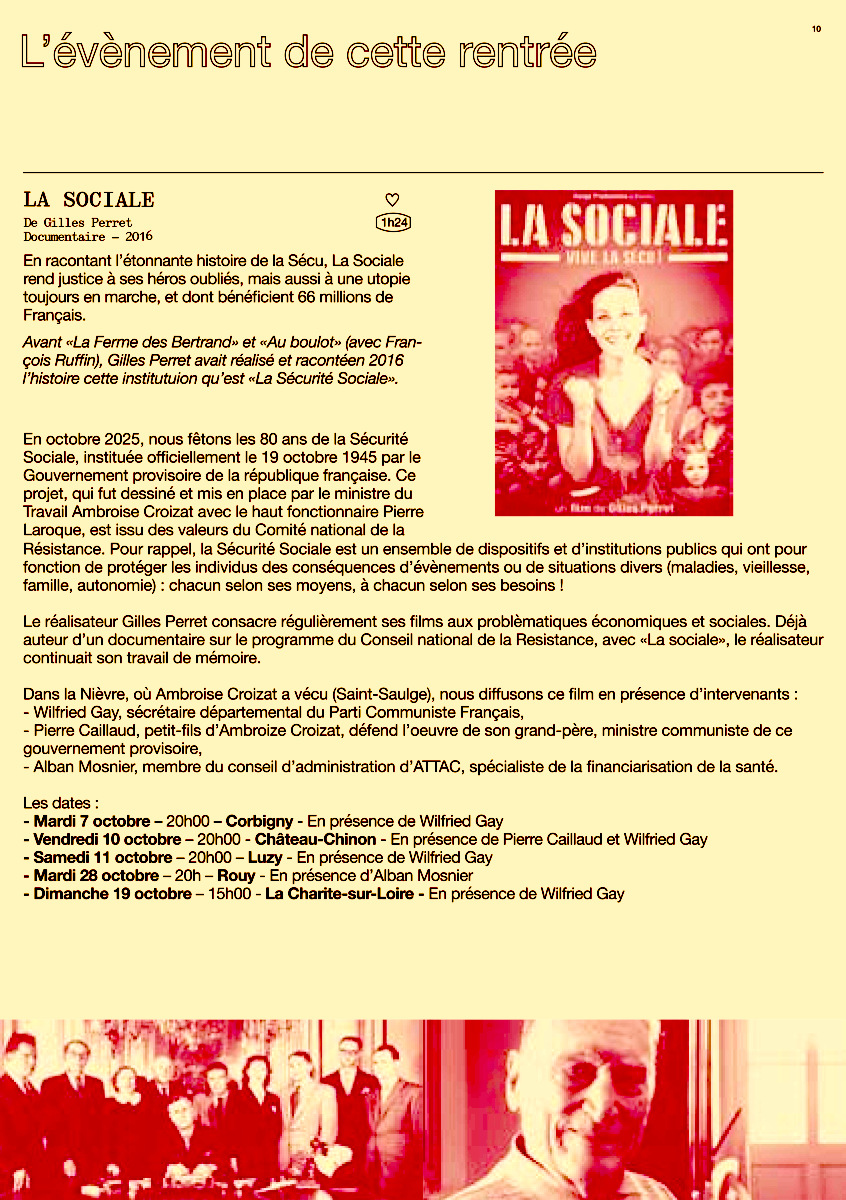 - 25 octobre : Ciné-débat La sociale avec Pierre Ouzoulias, Olivier Nobile